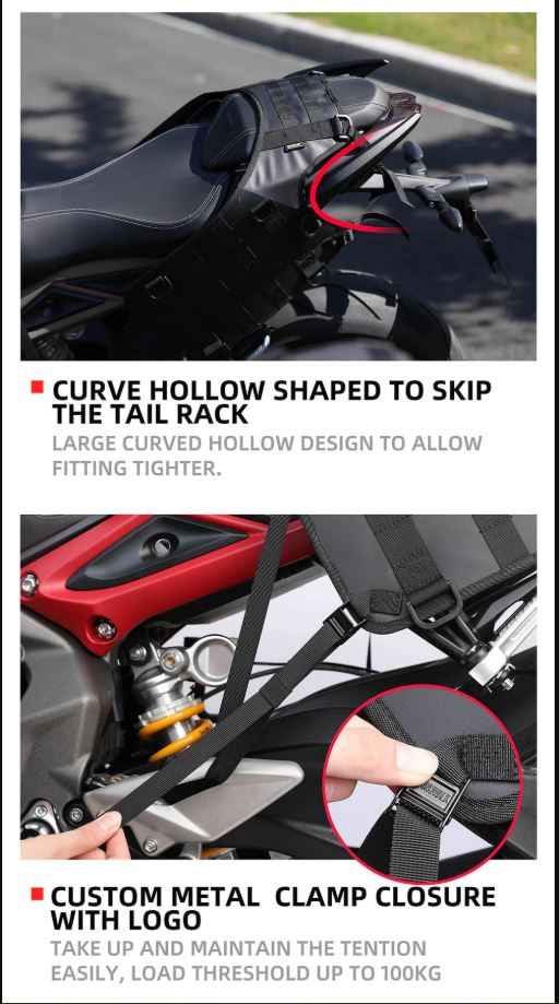 Key Features: Universal Fit: Compatible with rackless setups, street bikes, race bikes, and more.